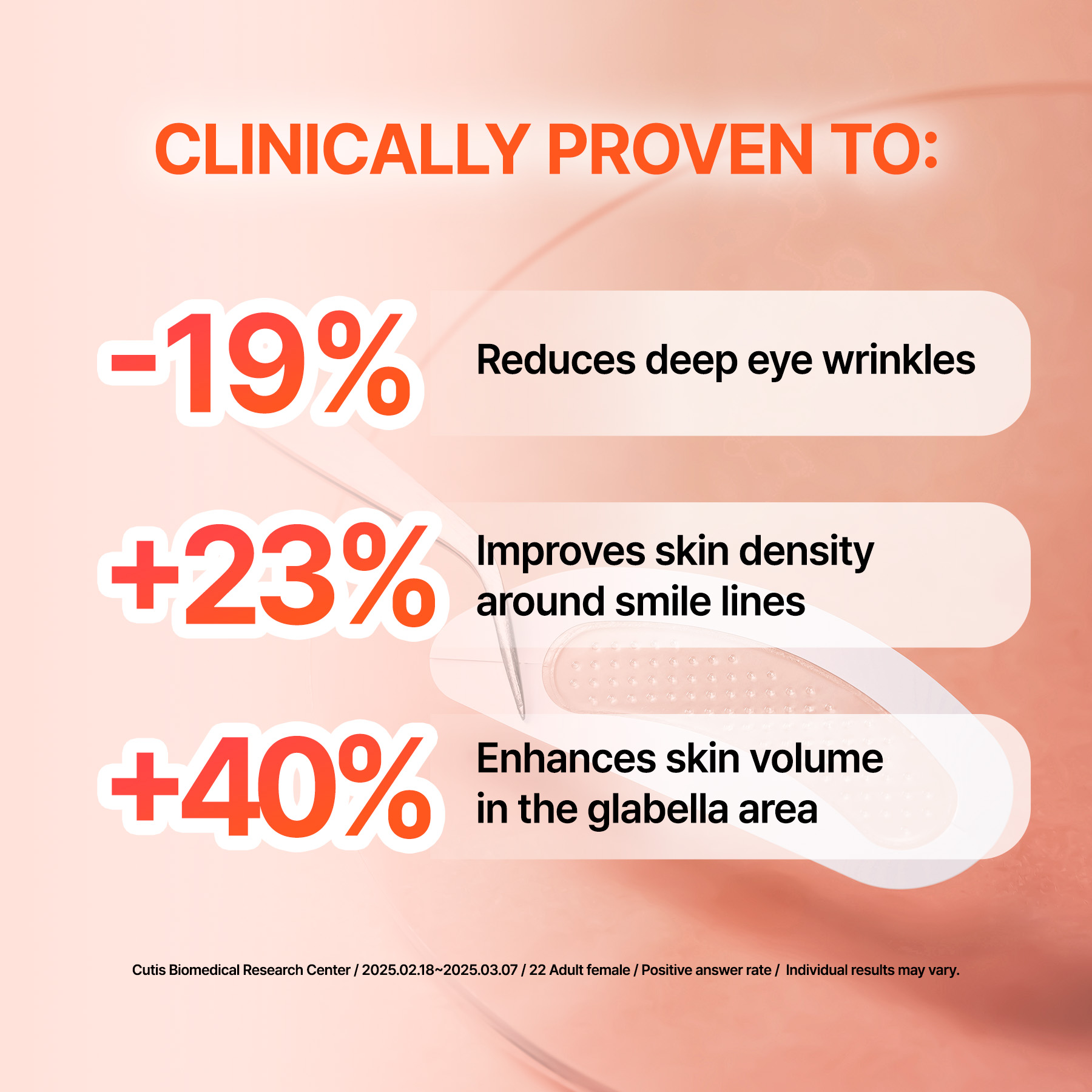 - An anti-aging T-shaped patch enriched with Retinol and PDRN to support skin’s natural turnover cycle, effectively addressing wrinkles and pigmentation concerns.