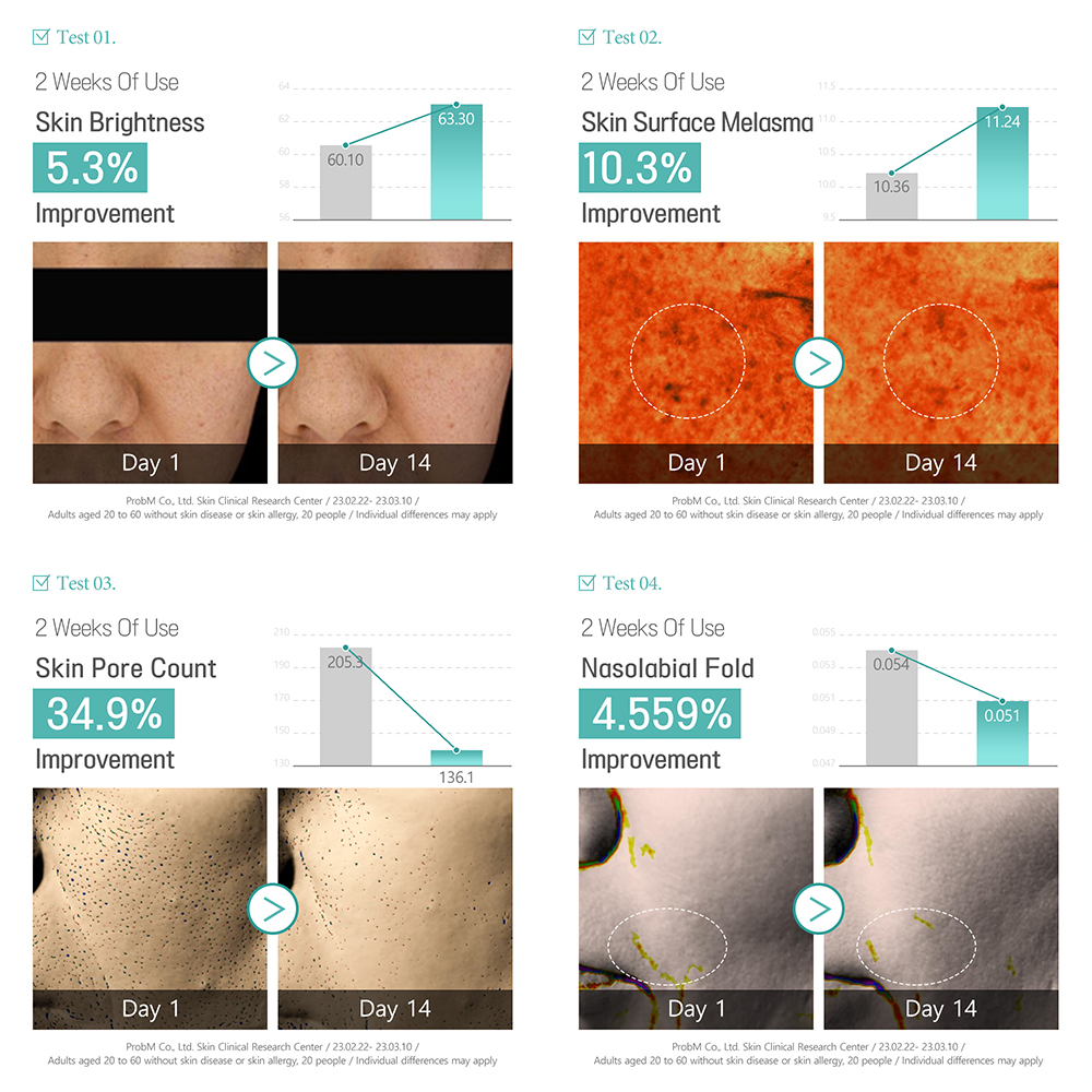 - Packed with Collagen and Adenosine to improve skin elasticity.