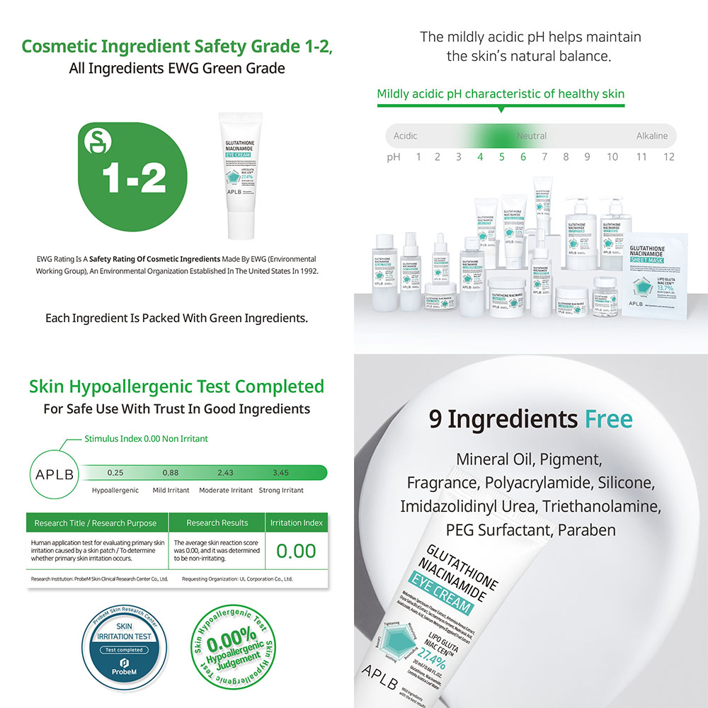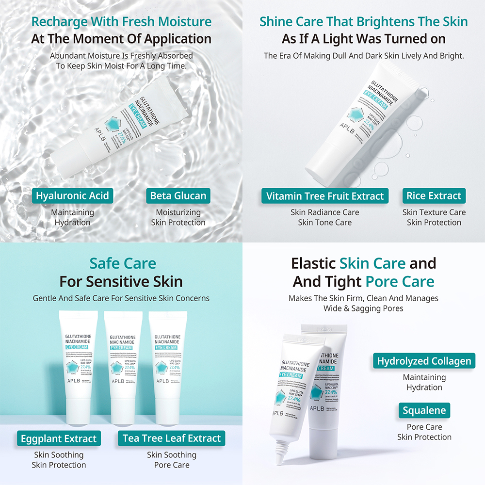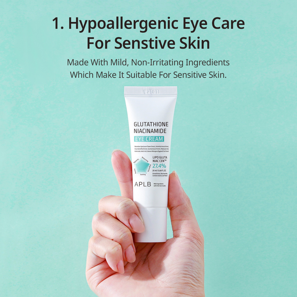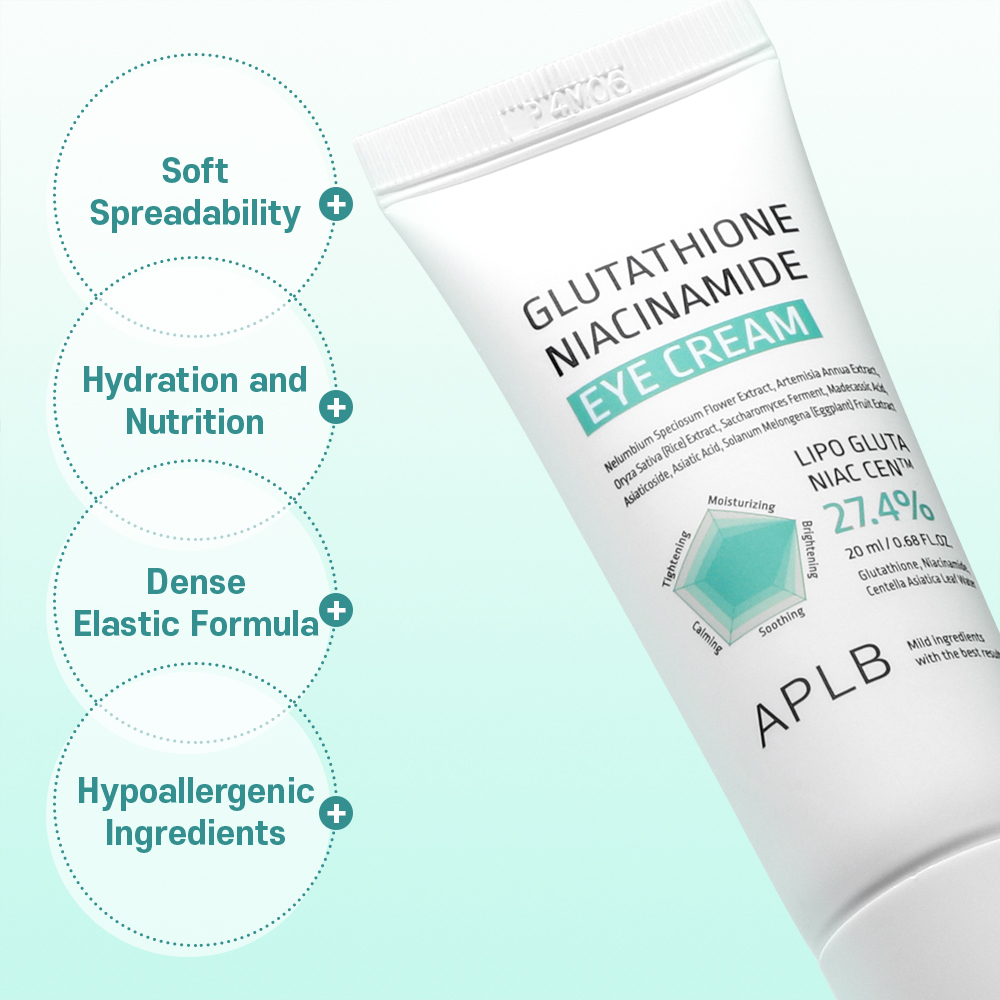 Say goodbye to tired and puffy eyes with this eye cream charged with Glutathione and Niacinamide to firm and brighten skin while smoothing out wrinkles and fine lines. Cica Leaf extract keeps irritation at bay. The lightweight and quick-absorbent texture enables swift penetration of active ingredients deep inside the skin. The dermatologically tested formula is hypoallergenic.