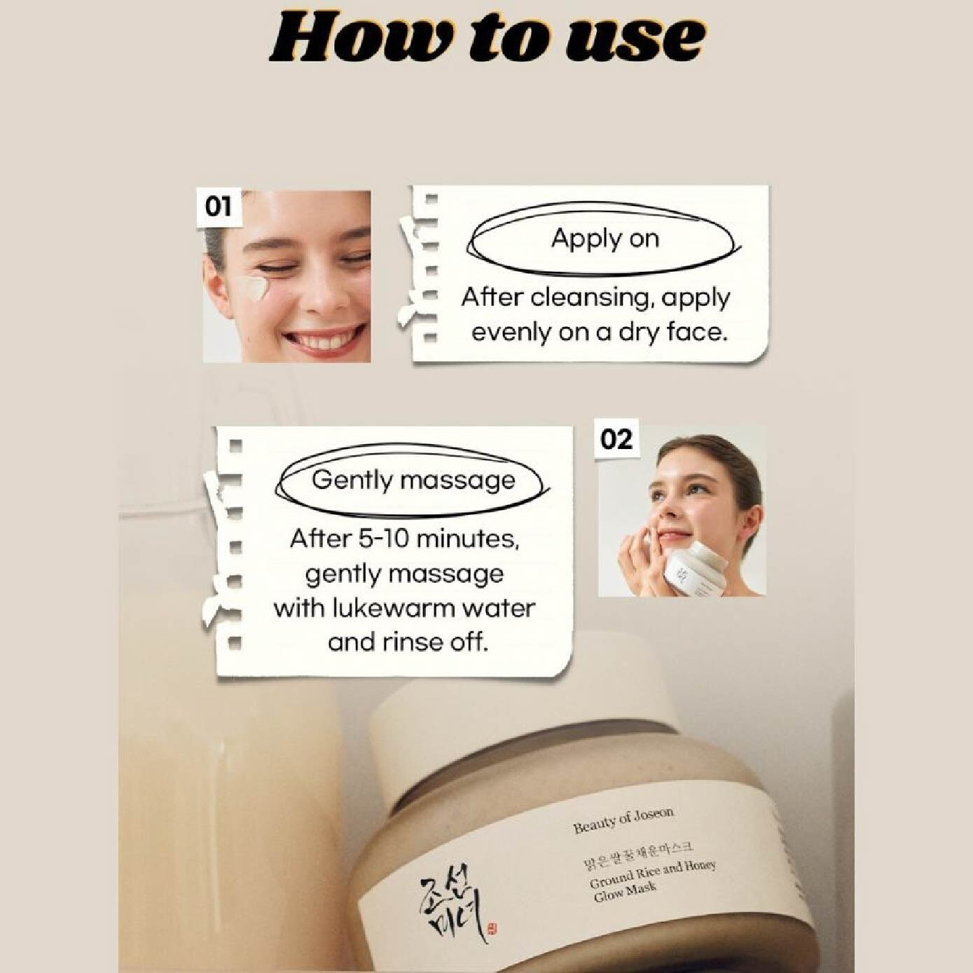 The natural Rice hull powder gently exfoliates dead skin cells and impurities, while honey provides deep hydration and helps reduce skin troubles, making it suitable for all skin types.