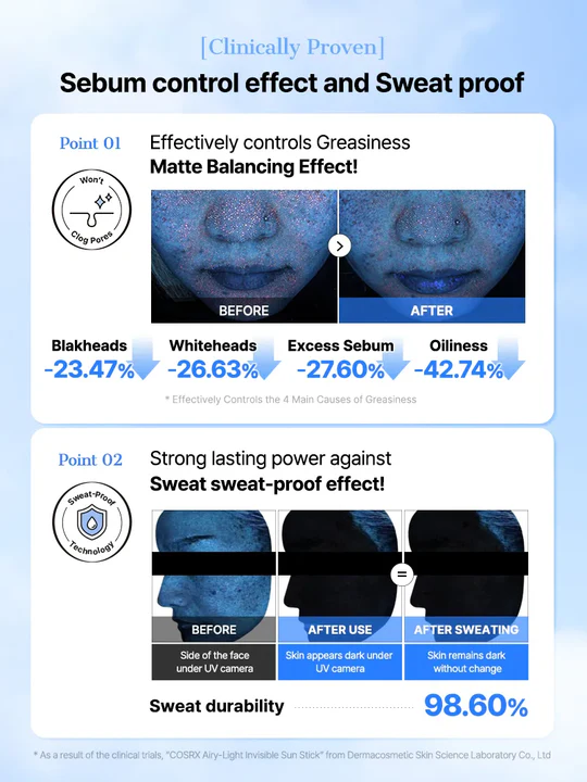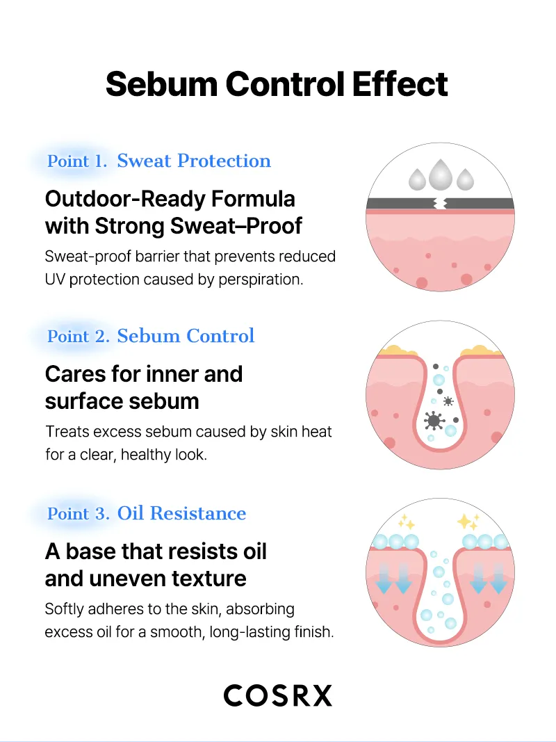 • Sweat-Proof & Sebum-Control