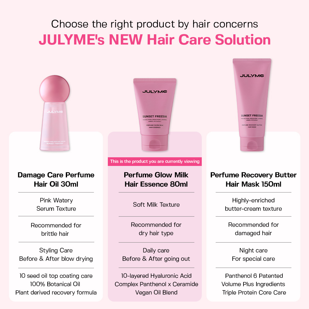 This nourishing hair essence is designed to deeply hydrate and smooth dry, damaged hair while leaving a soft, lasting fragrance. Formulated with 10 types of hyaluronic acids, it helps deliver multi-layer hydration to keep hair moisturised and supple throughout the day. Enriched with panthenol and ceramide, it nourishes the hair from within, helping improve elasticity and reduce tangling for a smoother, more manageable finish. The vegan oil-blending formula helps enhance shine and create a healthy-looking glow without heaviness. Infused with milk protein extract, the lightweight, non-sticky texture absorbs quickly into the hair, leaving it soft, silky, and delicately scented.