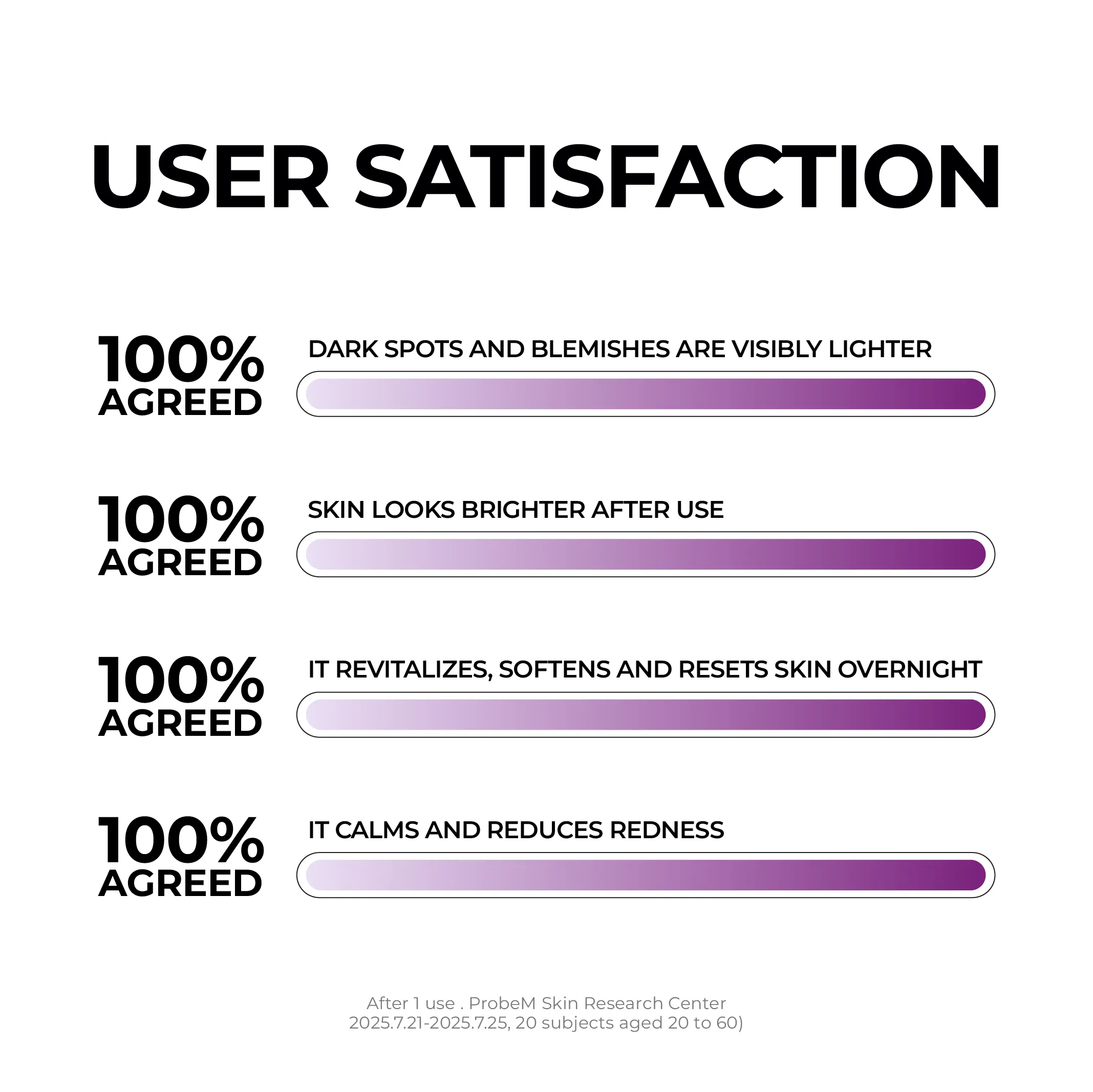 - An overnight cream enriched with Niacinamide and Ceramides to help visibly reduce dark spots and fine lines, while tightening pores and boosting hydration.