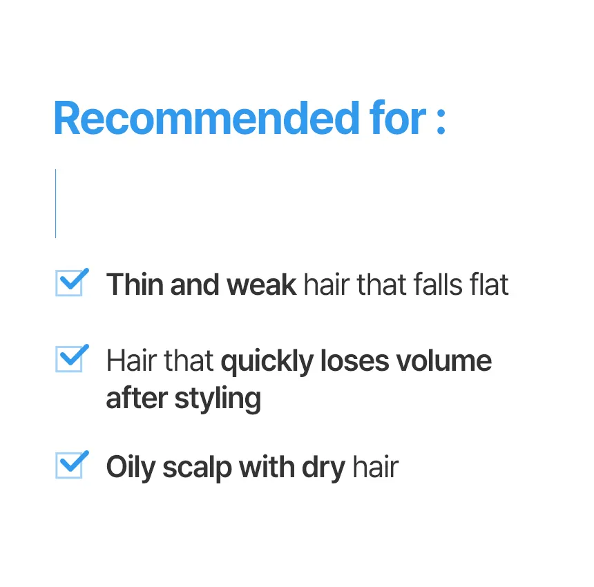 • Helps maintain scalp oil-water balance for natural volume