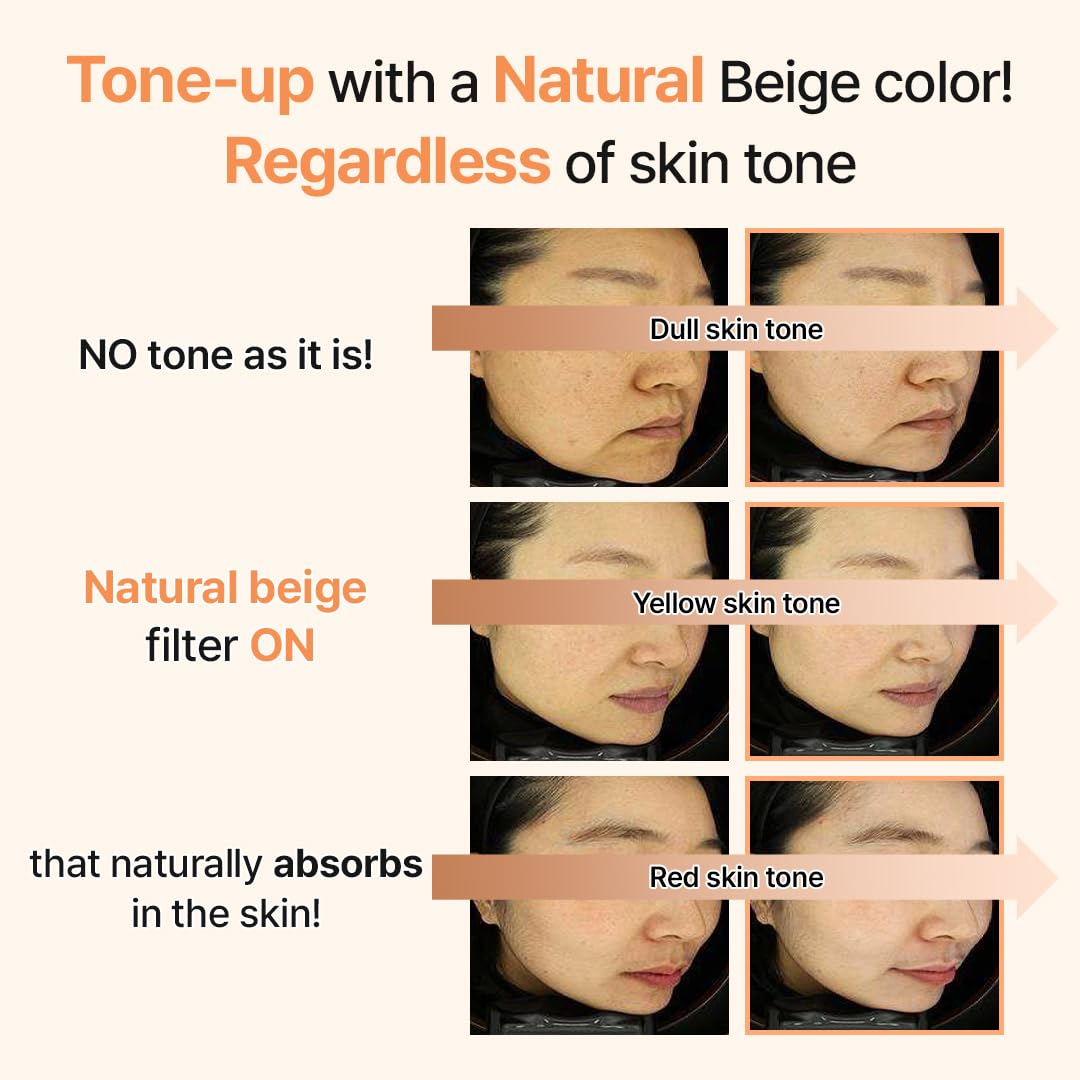 A physical tone up sunscreen that provides broad spectrum SPF50+ PA++++ protection while giving the skin a natural, healthy glow. The soft beige tint helps correct uneven tone, smooths the look of the complexion and keeps the skin hydrated with just a thin layer. The texture adheres well to the skin, delivering a long-lasting tone up effect without caking.