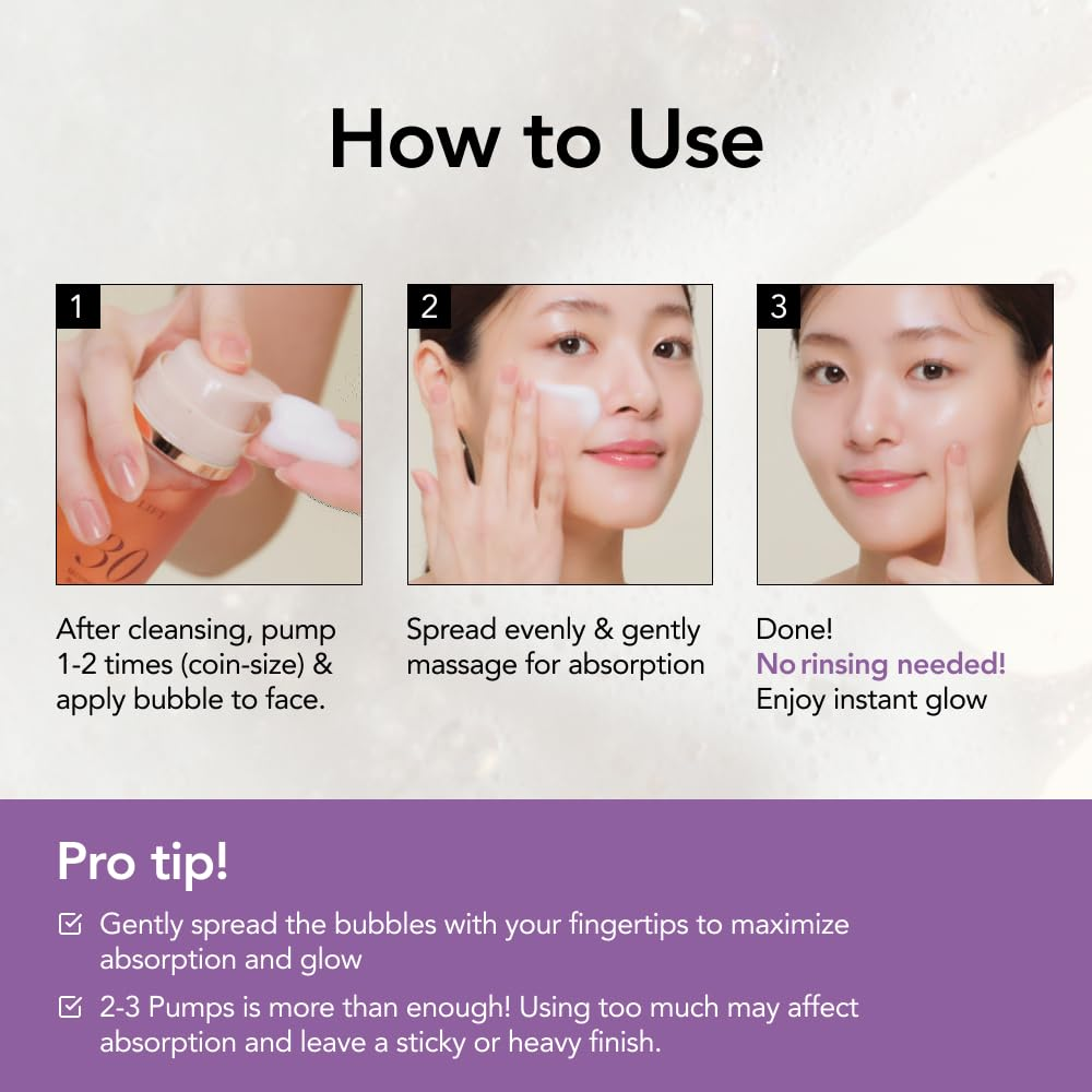 - Micro Bubble Capsules that boost the absorption directly to the skin.