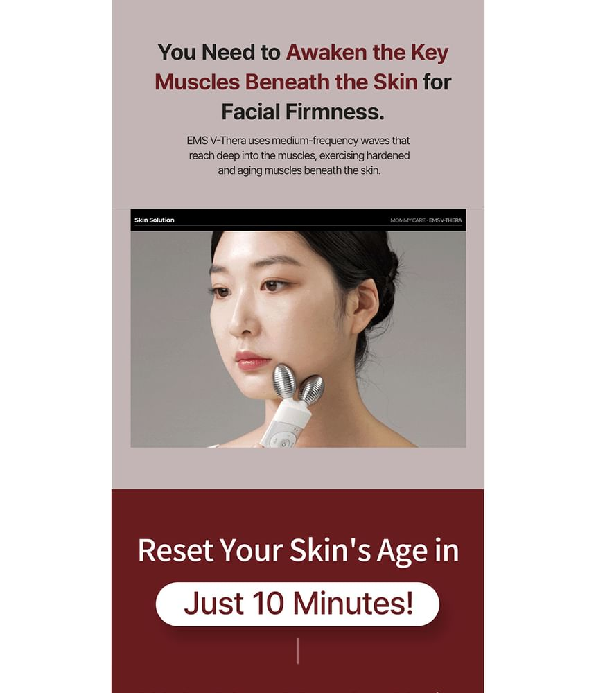 - This device, with medium frequency waves, awakens the key muscles beneath the skin for facial firmness in just 10 minutes.