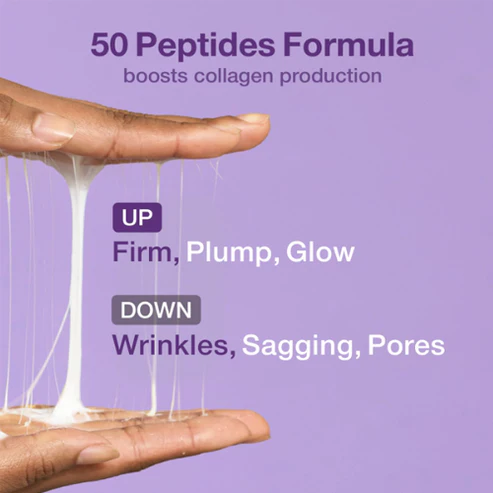 - 50 types of Peptides improve different types of wrinkles such as smile lines, frown lines and under-eye wrinkles.