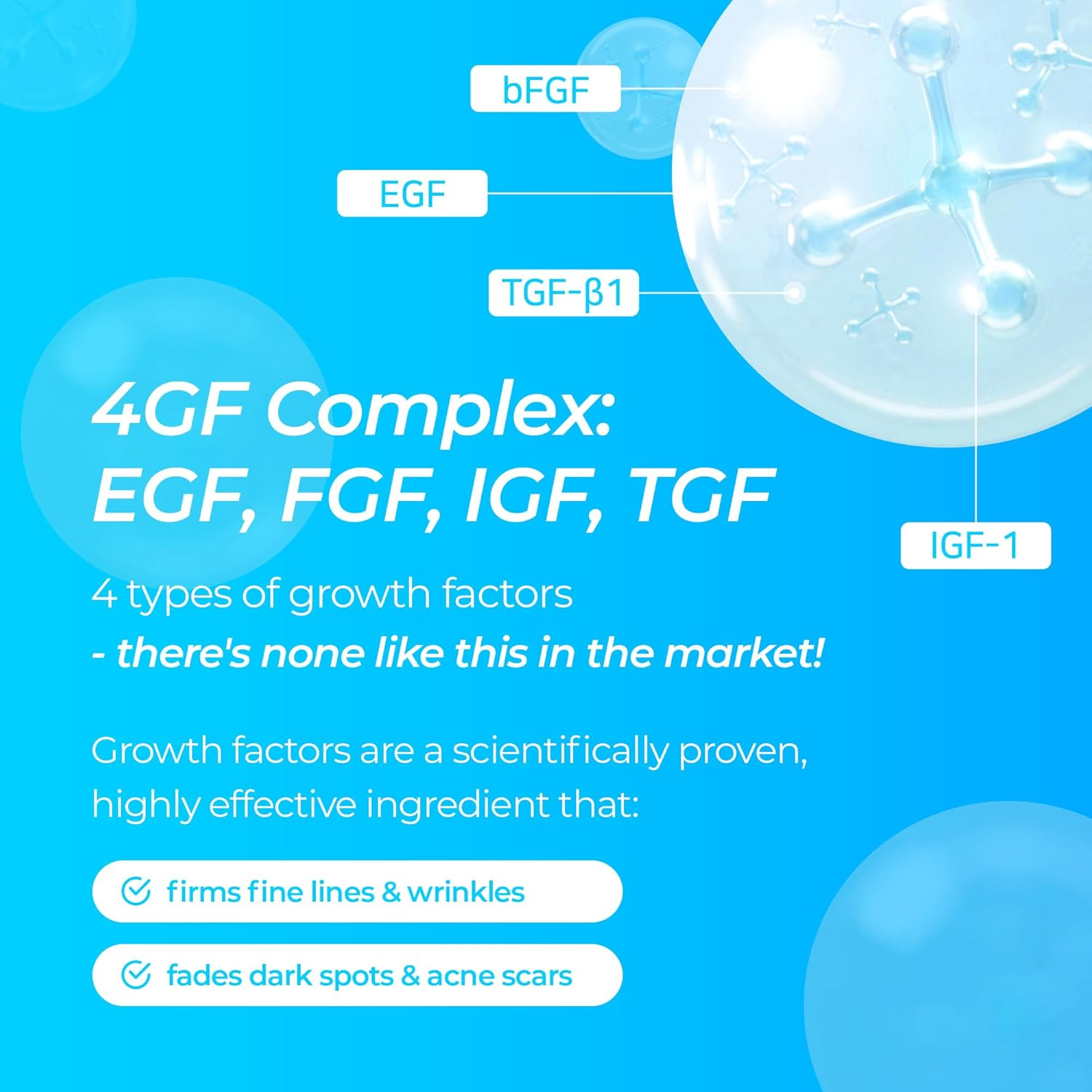 • 4GF Complex (EGF, FGF, IGF, TGF) boosts firmness and regeneration