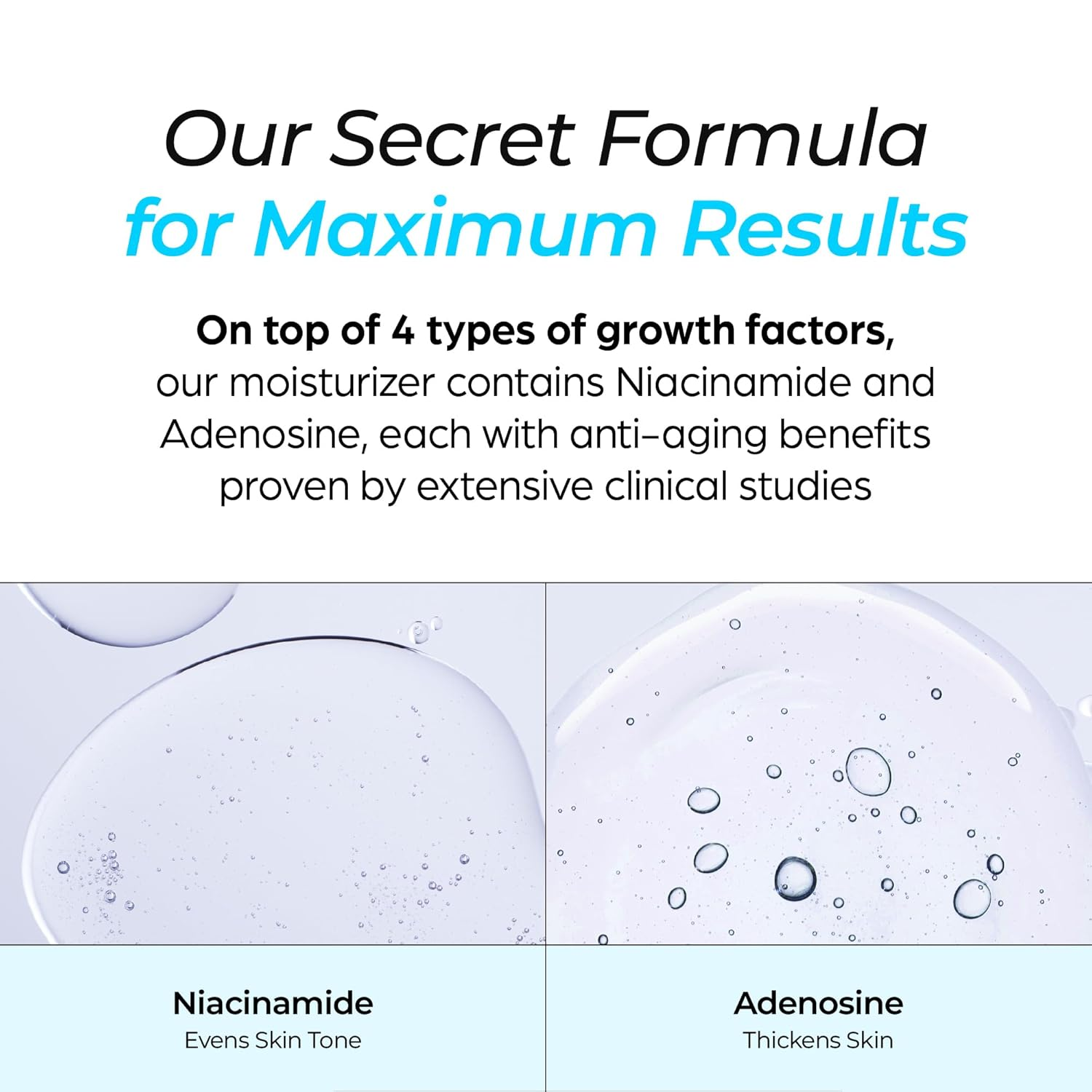 This wrinkle care cream combines niacinamide and glacial water to smooth fine lines, even skin tone and strengthen the skin barrier. Its refreshing yet nourishing texture absorbs comfortably, delivering deep hydration while helping to calm and reinforce sensitive skin. The formula is enhanced with a 4GF Complex featuring EGF, FGF, IGF and TGF to boost firmness, support skin regeneration and fade the appearance of dark spots and acne scars. Hypoallergenic tested, it is gentle enough for sensitive skin while offering powerful anti-ageing and tone correcting benefits.
