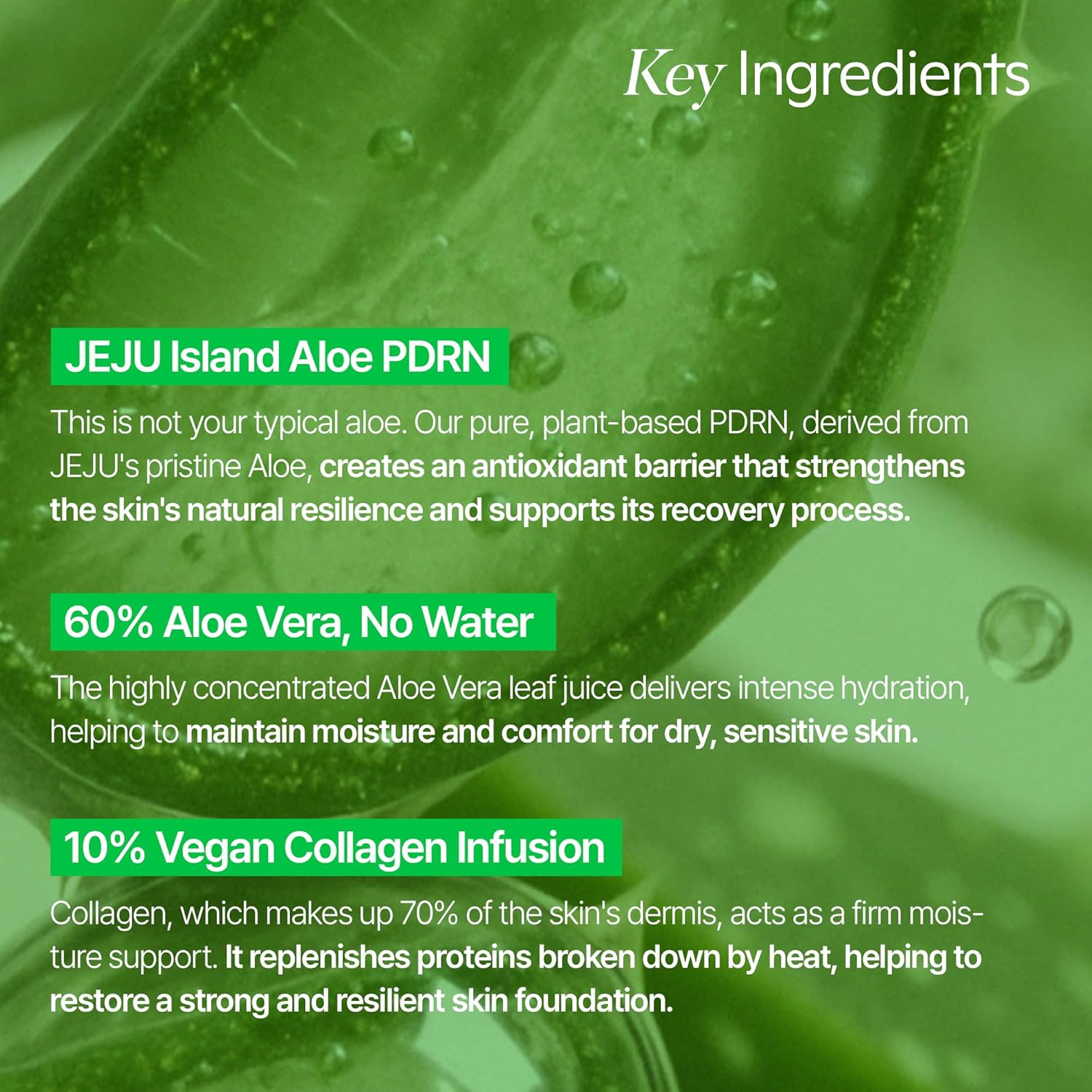 Aloe Barbadensis Leaf Water (600,000ppm), Collagen Water, Glycerin, Butylene Glycol, Glycereth-26, Water, 1,2-Hexanediol, Glyceryl Glucoside, Caffeine, Glyceryl Acrylate/Acrylic Acid Copolymer, Acrylates/C10-30 Alkyl Acrylate Crosspolymer, Arginine, Allantoin, Melia Azadirachta Leaf Extract, Ethylhexylglycerin, Adenosine, Dipotassium Glycyrrhizate, Xanthan Gum, Melia Azadirachta Flower Extract, Disodium EDTA, Glucose, Curcuma Longa (Turmeric) Root Extract, Aloe Barbadensis Leaf Extract (112ppm), Dioscorea Japonica Root Extract, Laminaria Japonica Extract, Ulmus Davidiana Root Extract, Viola Mandshurica Flower Extract, Ocimum Sanctum Leaf Extract, Hydrolyzed Sodium Hyaluronate, Hydrolyzed Hyaluronic Acid, Dimethylsilanol Hyaluronate, Hyaluronic Acid, Potassium Hyaluronate, Sodium Hyaluronate, Centella Asiatica Extract, Hydroxypropyltrimonium Hyaluronate, Sodium Hyaluronate Crosspolymer, Sodium Hyaluronate Dimethylsilanol, Corallina Officinalis Extract, Sodium Acetylated Hyaluronate, Sodium DNA (2ppm)