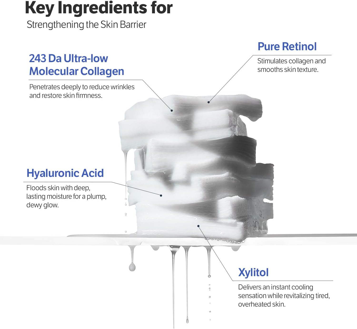Water, Dipropylene Glycol, Glycereth-26, Glycerin, Betaine, 1,2-Hexanediol, Styrene/Acrylates Copolymer, Allantoin, Hydrolyzed Collagen, Xylitol, Hydroxyacetophenone, Ethylhexylglycerin, Caprylyl Glycol, Butyrospermum Parkii (Shea) Butter, C12-14 Alketh-12, Sodium Polyacrylate, Adenosine, Hydrogenated Lecithin, Polyglyceryl-10 Stearate, Centella Asiatica Extract, Lecithin, Polysorbate 20, Sodium Hyaluronate, Retinol, Hydroxypropyltrimonium Hyaluronate, Mentha Rotundifolia Leaf Extract, Camellia Sinensis Leaf Extract, Thymus Vulgaris (Thyme) Leaf Extract, Sodium Acetylated Hyaluronate, Hydrolyzed Hyaluronic Acid, Hyaluronic Acid, Madecassoside, Madecassic Acid, Asiaticoside, Asiatic Acid, Sodium Hyaluronate Crosspolymer, Hydrolyzed Sodium Hyaluronate, Potassium Hyaluronate