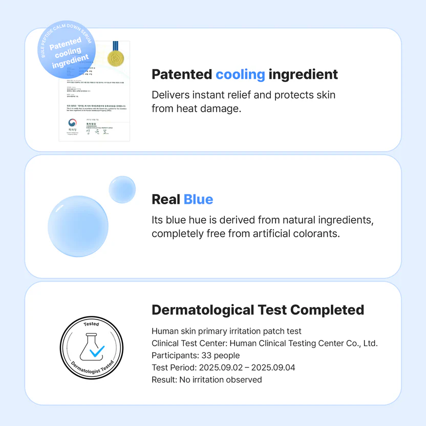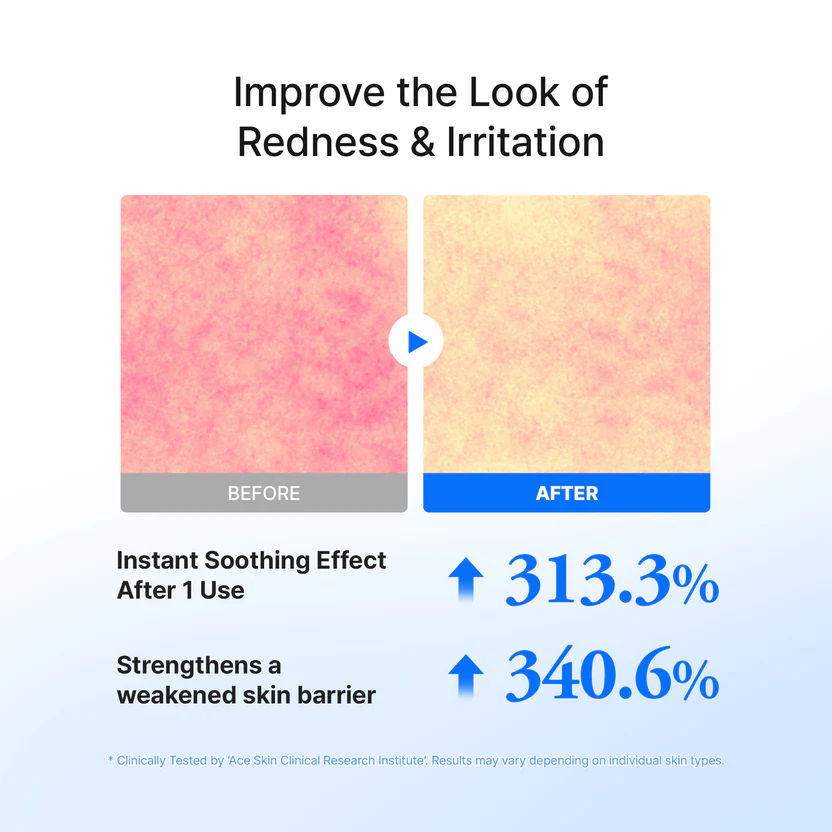 - Formulated with Nymphaea Caerulea Flower Extract and Cica-Peptide complex to strengthen skin barrier and calm irritations while keeping your skin hydrated and soft.