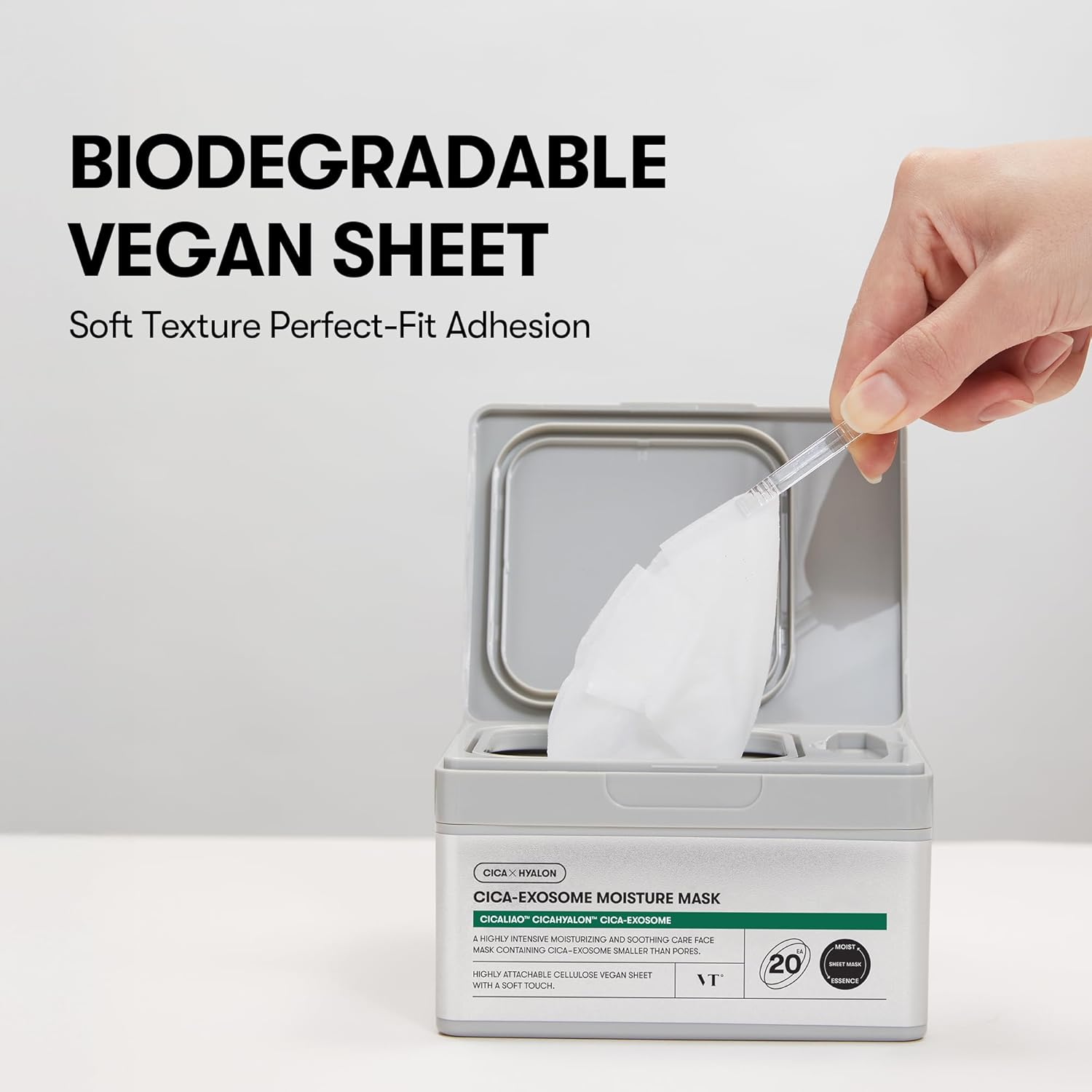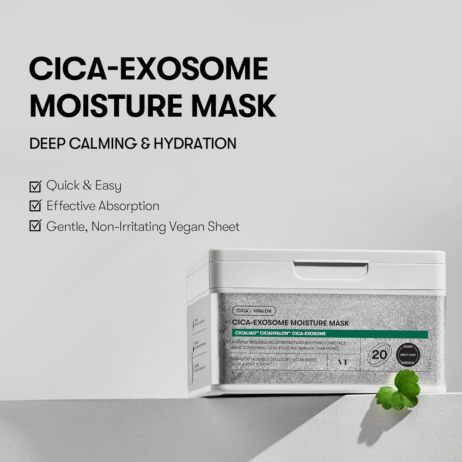- A highly intensive vegan mask with Cica-Exosome helps replenish moisture and soothe skin.